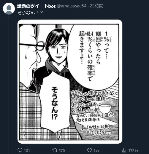 - 100回もやれば「一度くらいは起きる」方が多数派