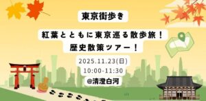 フォト散歩(写真さんぽ、カメラさんぽ)に良さげなイベント。定期的に歴史散策ツアーをやってらっしゃる方 ↓↓ 【11/23(日)】🏮 紅葉とともに東京巡る散歩旅!清澄庭園 歴史散策ツアー ! 🔰 初心者大歓迎! […]