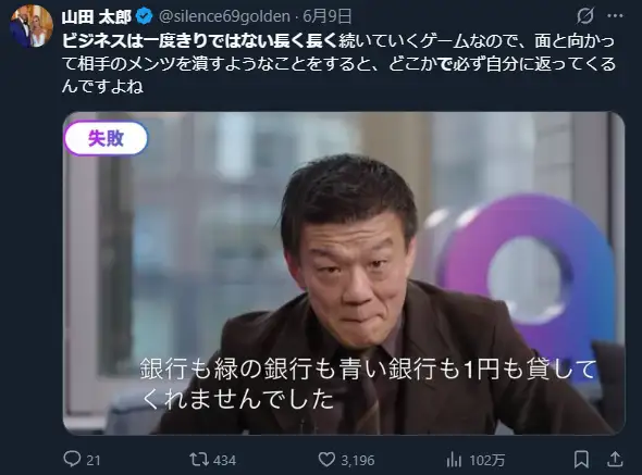 ビジネスは一度きりではない長く長く続いていくゲームなので、面と向かって相手のメンツを潰すようなことをすると、どこかで必ず自分に返ってくるんですよね