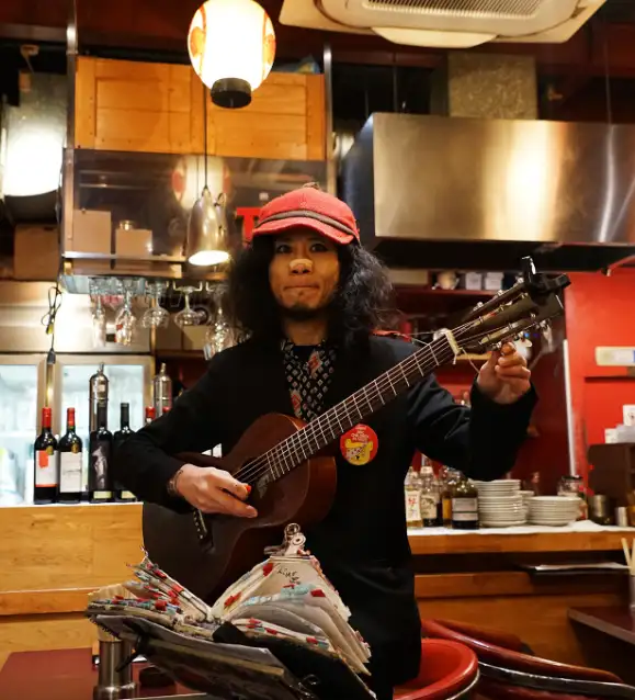 1時間ほど飲み食いしてたところに、突如、「流し」の男性が現れた。